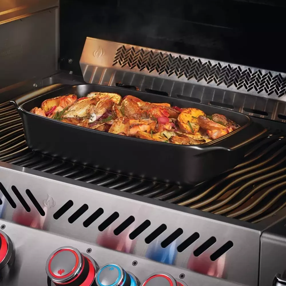Nå kan du lage lekre, breserte retter, krydret langtidskokt mat og nybakt brød på grillen med dette keramiske fatet med lokk fra Napoleon.