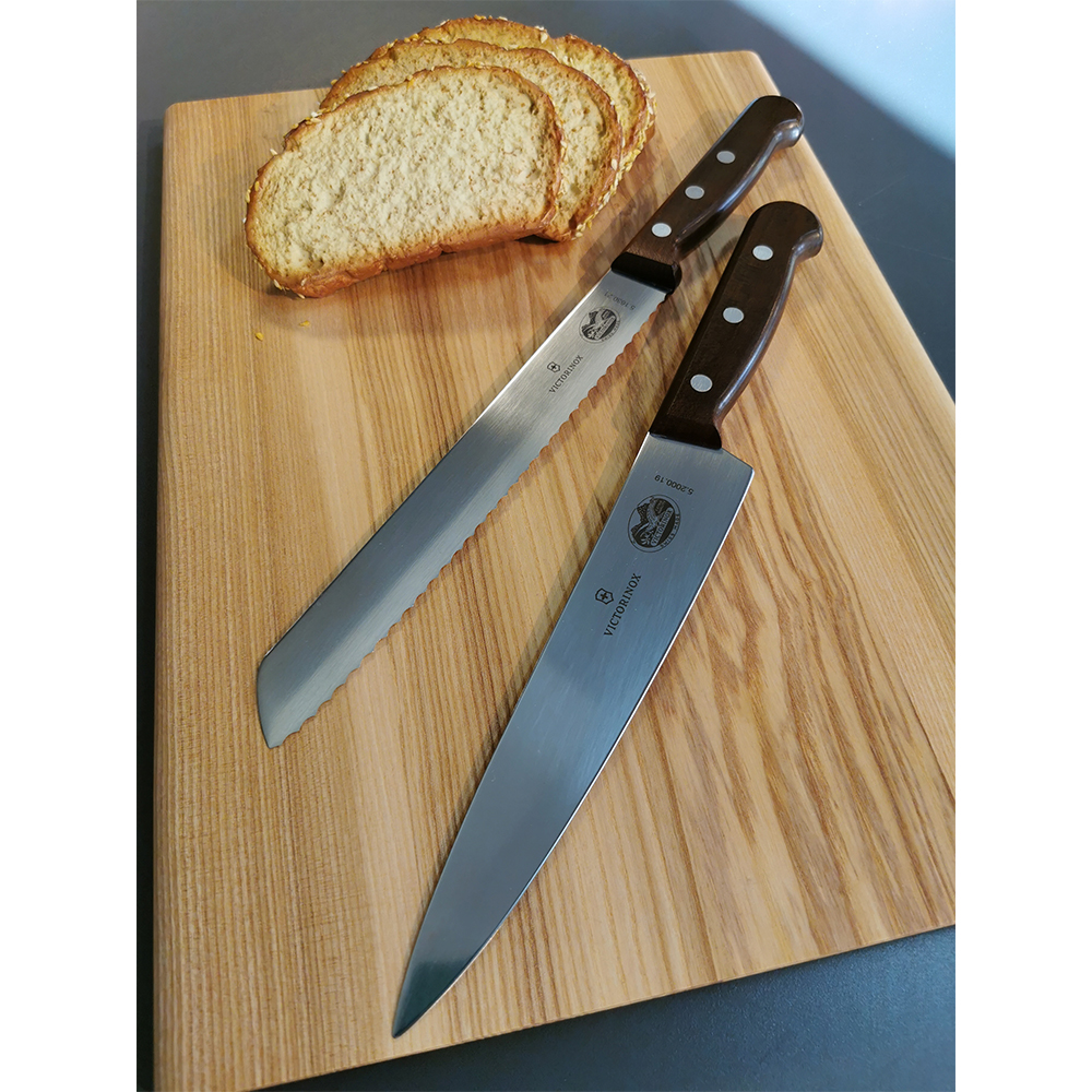 Victorinox knivsett i 2 deler i gaveeske; inneholder brødkniv 21 cm med bølget egg og kokkekniv 19 cm med glatt egg. Begge knivene har robust tre håndtak i elegant design som er polert for hånd for å gi et komfortabelt grep. Dette settet dekker behovet ved et hvert måltid; brødkniven deler opp bakervarene dine og kokkekniven skjærer perfekt gjennom frukt, grønnsaker og kokt eller grillet kjøtt uten å ødelegge kjøttets naturlige fiber.