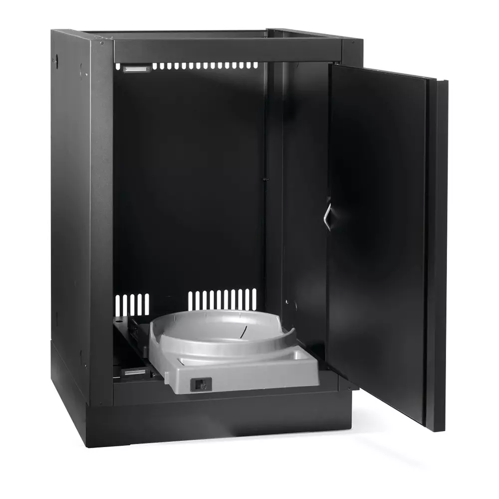 Dette OASIS™-skapmodulen har en skapdør og en uttrekksskuff for gassflasken, som både holder flasken stabil og skåner ryggen når gassflasken skal byttes. Modulen har justerbare føtter, slik at den står rett også på ujevnt underlag. Installasjonen er enkel, da modulen leveres ferdig montert med utsparinger for strøm og gass. På toppen av modulen er det plass til en benkeplate, som kjøpes separat.