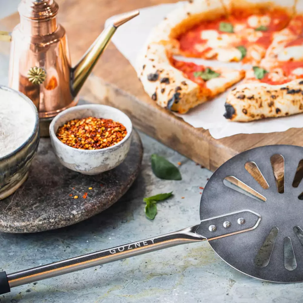 Gozneys roterende spade er utformet for å gjøre det enkelt å flytte og snu mat i ovnen. Etter at du har plassert en stekt pizza i ovnen med Gozneys pizzaspade, kan du enkelt flytte og snu pizzaen med den roterende spaden under steking. Dette reduserer risikoen for brannskader og andre skader på grunn av høye temperaturer.